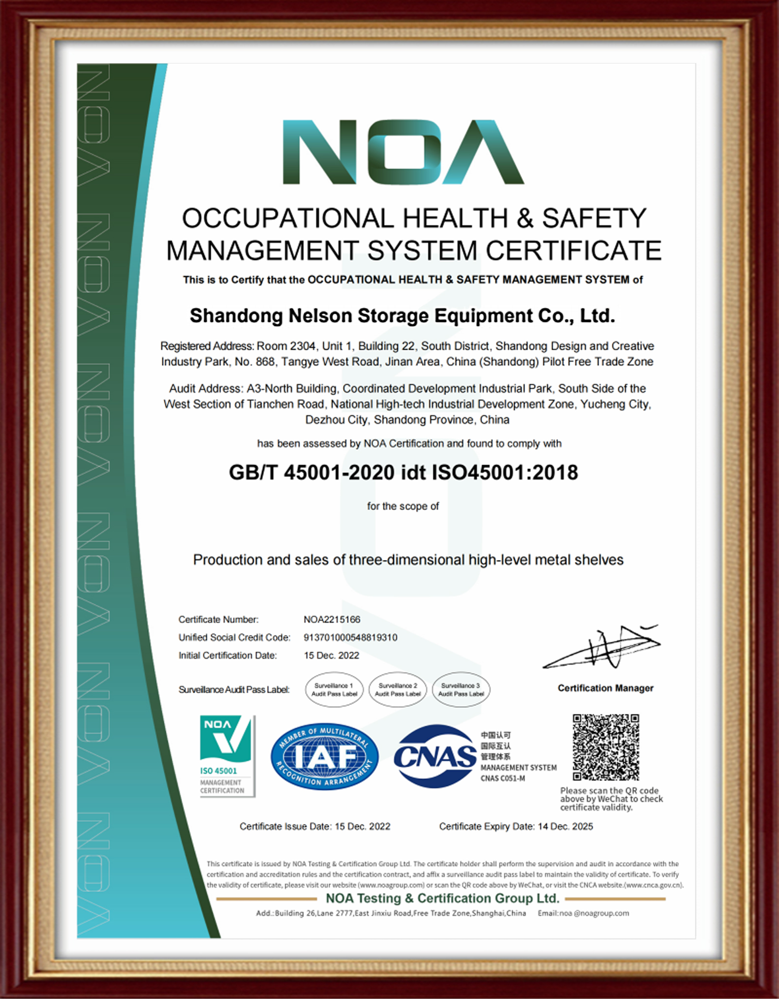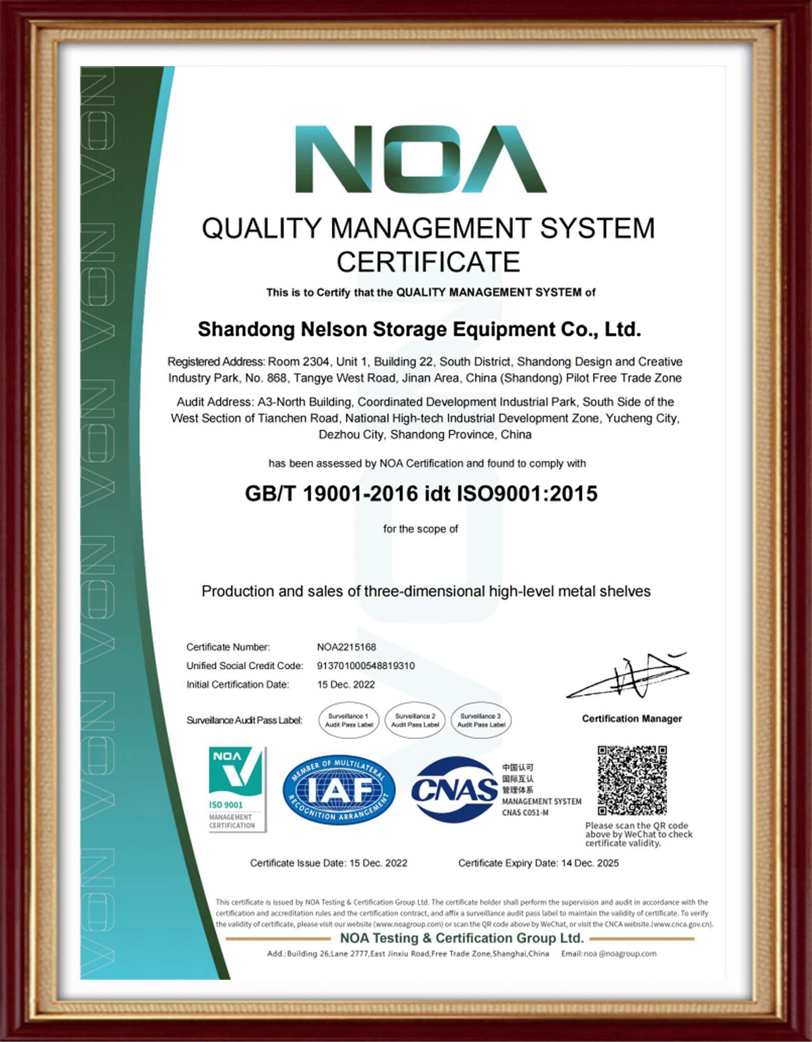 SHANDONG NELSON STORAGE EQUIPMENT CO., LTD avec 15 ans d'expérience dans l'industrie, nous sommes devenus un excellent pionnier dans l'industrie des rayonnages d'entrepôt.
